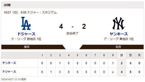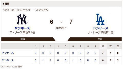 ヤンキースVSドジャースを