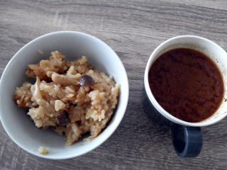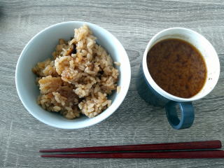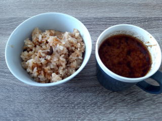それと赤だしみそのお湯割り汁。