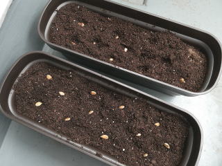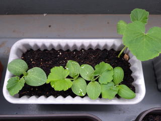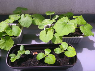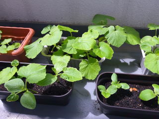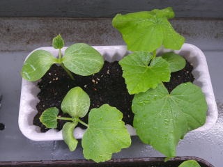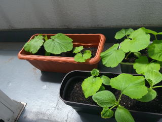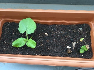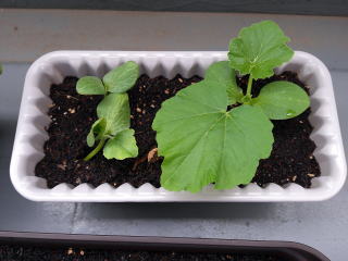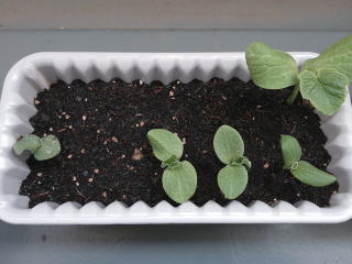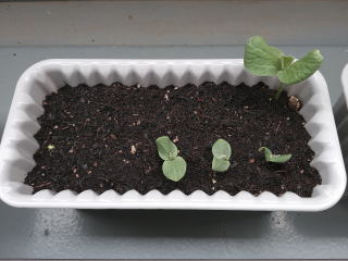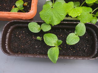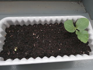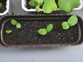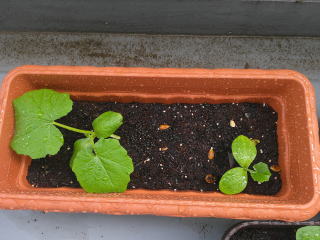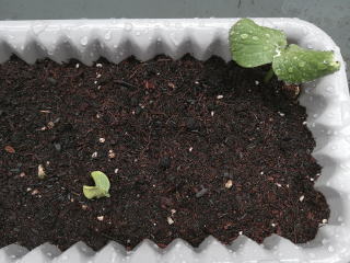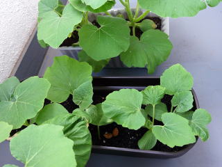 かぼちゃが既に芽をだしている