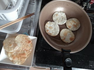 餃子の皮を12枚焼きました