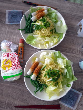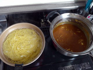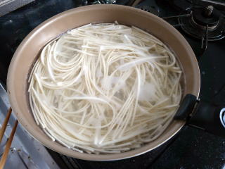 スパゲッティとちくわ4本茹でました