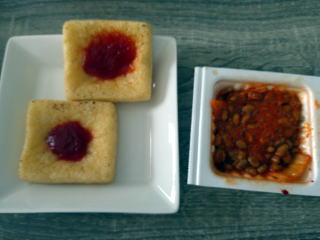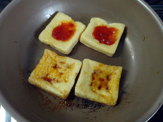 油あげ3枚を焼いてトマトケチャップで