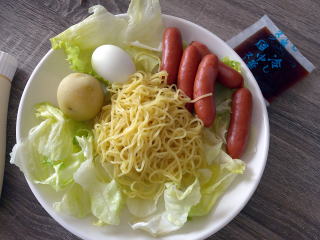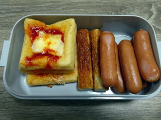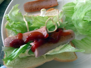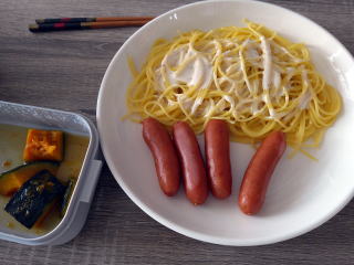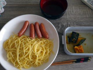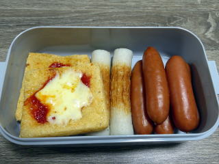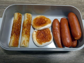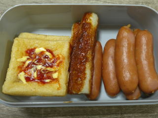 昼食用に魚肉ソーセージ1本を
