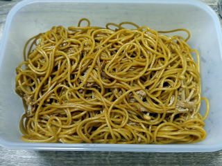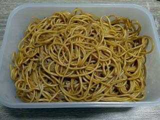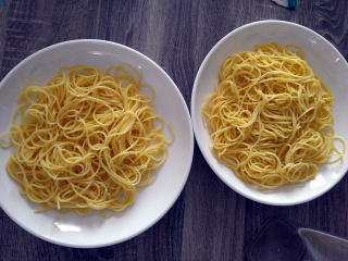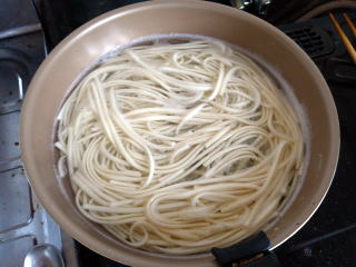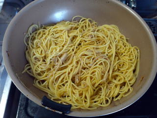 茹でたスパゲッティを入れて