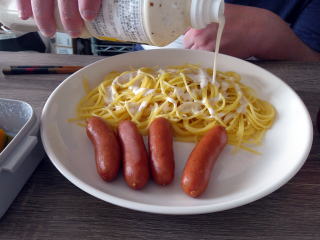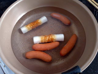 AN身内がウインナーを炒めてました