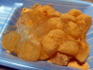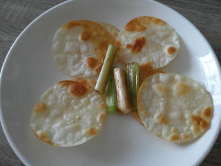 餃子の皮8枚を焼いて(揚げて)