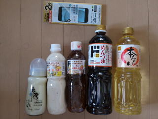 コーミソース、しょう油、かつおぶし、