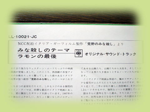 これに「夕陽の用心棒」「夕陽のガンマン」「荒野の用心棒」等のイタリアオリジナル・シングル