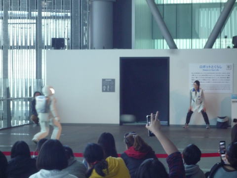 ひと通り終わって後ずさりで帰って行くASIMO。