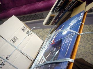 雨が小止みになったのを見計らい地下鉄駅まで段ボールを抱えて急ぎ足。